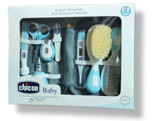 ست مانیکور چیکو در دو رنگ طوسی و کرم شامل اقلام کاربردی: شانه و برس، قیچی، ناخنگیر مخزن دار، پوآر بینی، سوهان ناخن، مسواک انگشتی، شیردوش، تب سنج، قطره چکان، عصاره خوری، داروخوری، دندانگیر و پستانکی.