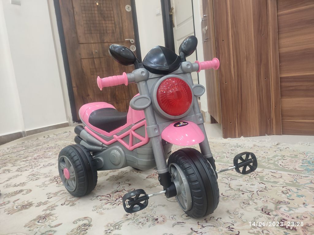 ابعاد ۵۵ × ۴۰ × ۵۵ سانتیمتر، تعداد چرخ سه چرخ، سیستم موزیکال دارد، مناسب برای ۱۸ ماه به بالا، تحمل وزن تا ۴۰ کیلوگرم.