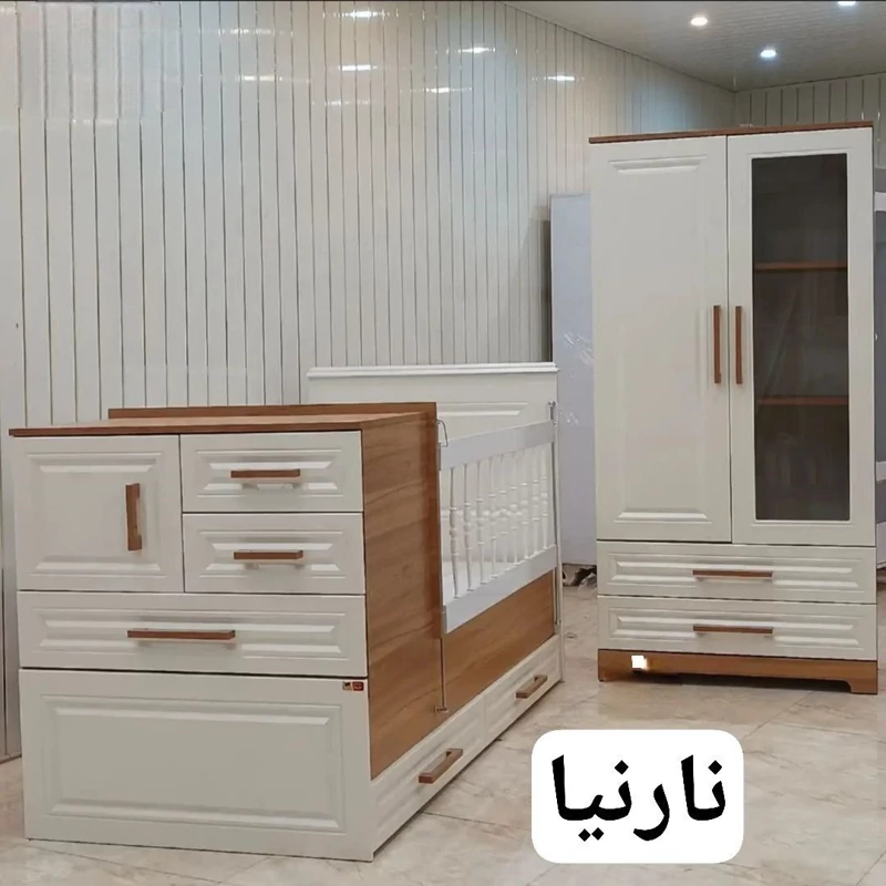 سرویس تخت و کمد (دو منظوره نوزاد و نوجوان) سرویس 3 تیکه (کمد عرض 90،ویترین عرض50،تخت دومنظوره 80 در 180) دوتیکه و تک کمد از عرض 70 تا 120 تخت از نوزادی تا یک نفره (گهواره ای و ثابت) هرگونه تغییر ابعاد یا رنگ قابل اجرا میباشد. هزینه ارسال برعهده مشتری محترم است. زمان آماده شدن سفارش 20 روز کاری