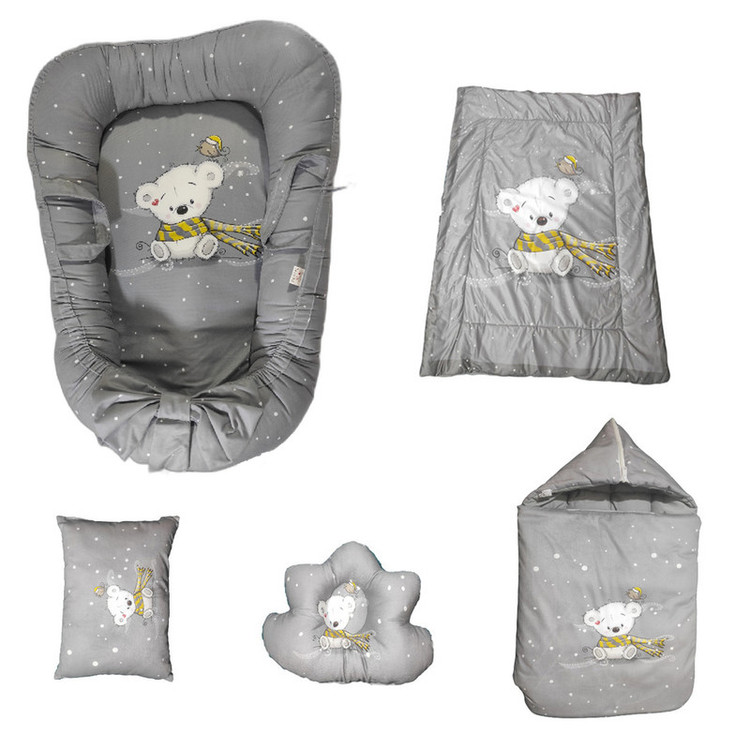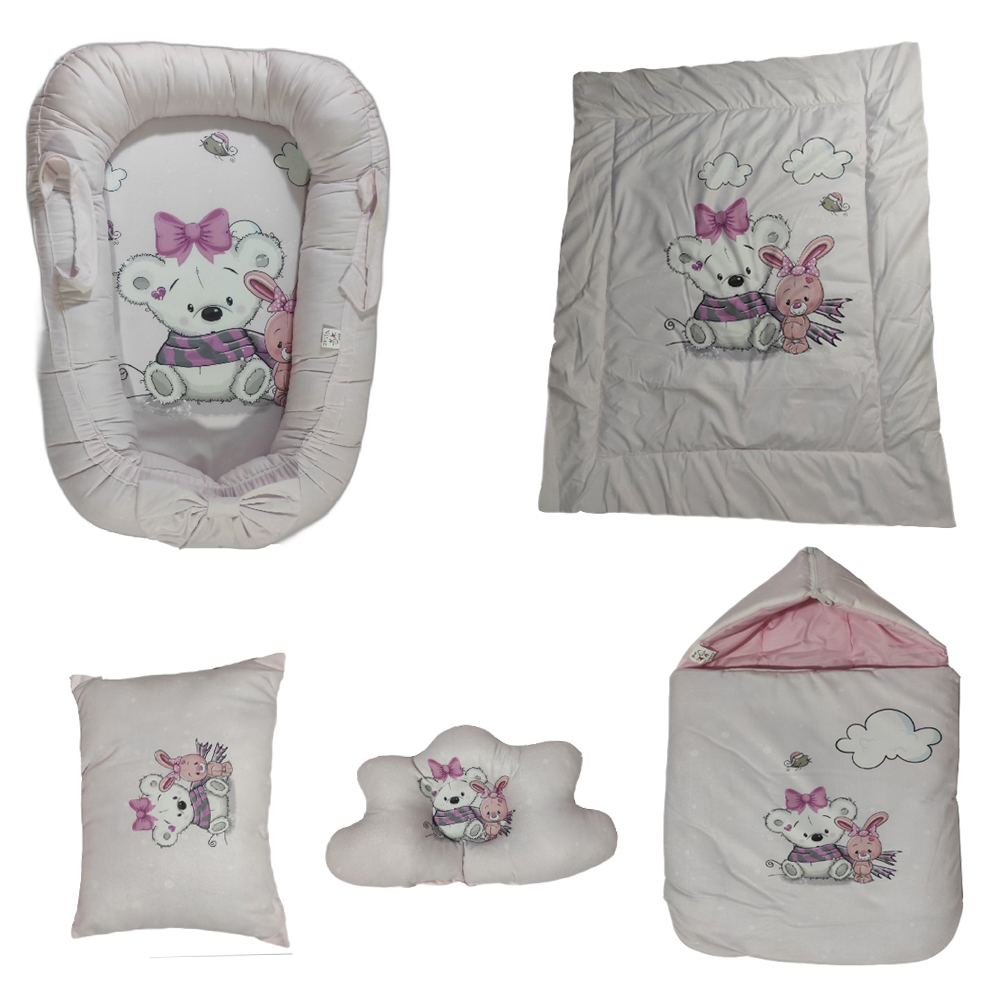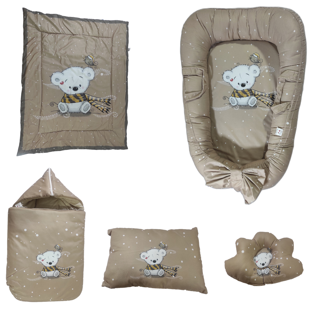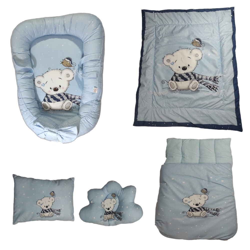 سرویس خواب نوزاد مدل خرس شالدار کد 1 مجموعه 5 عددی