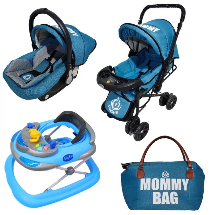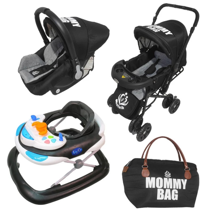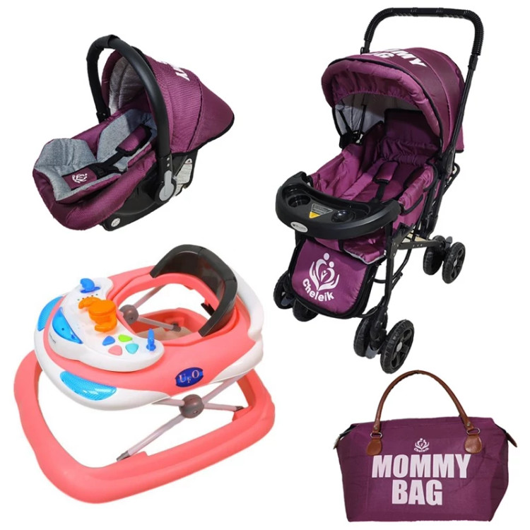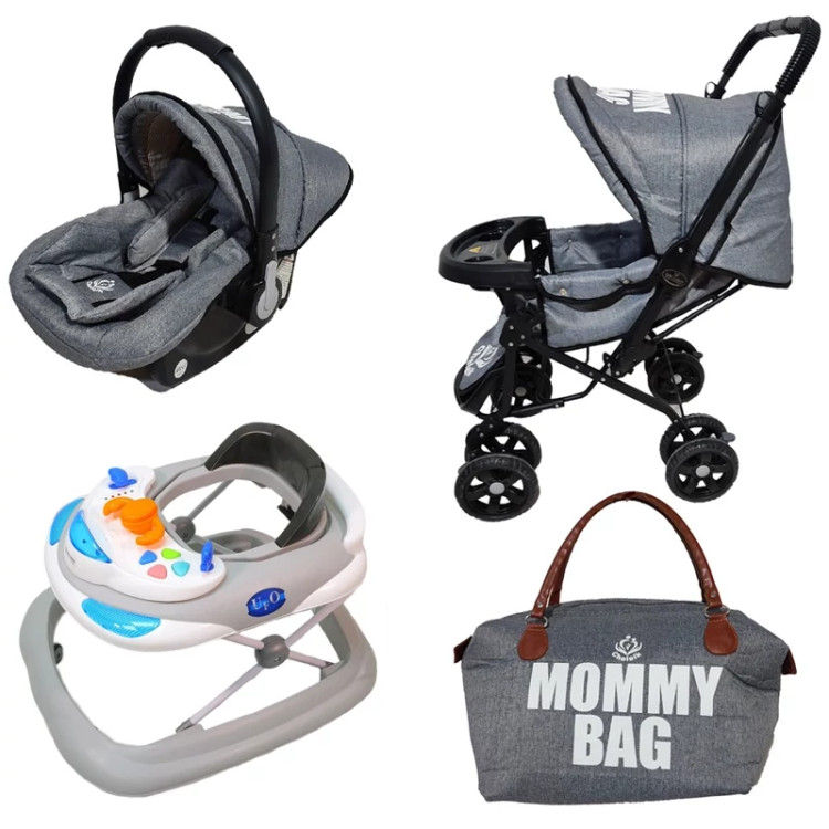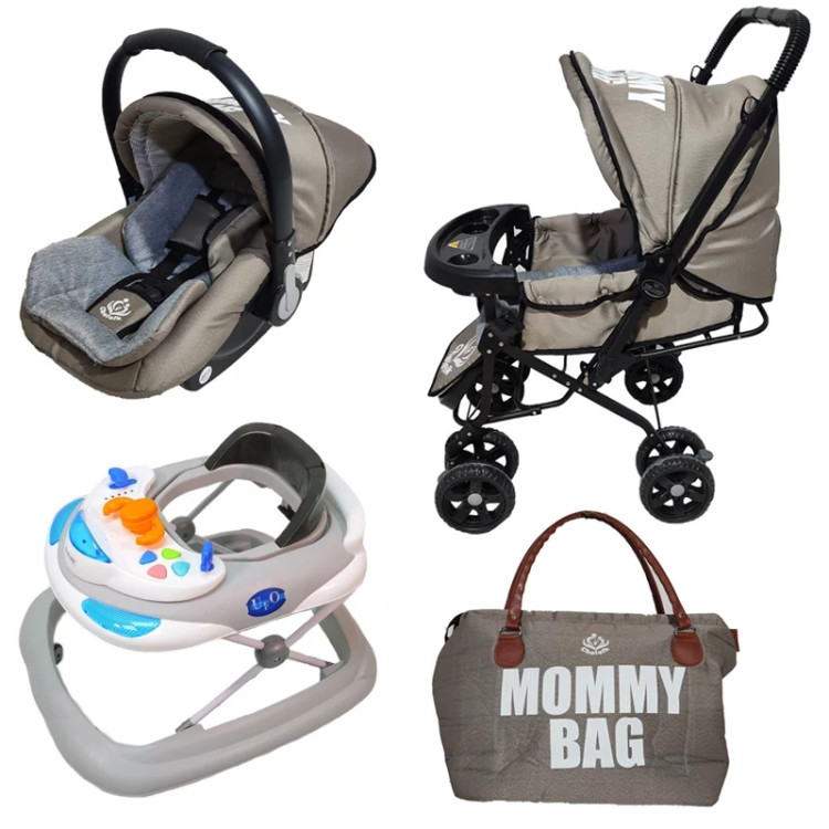 سرویس کالسکه و کریر به همراه روروئک و ساک لوازم کودک کد 100